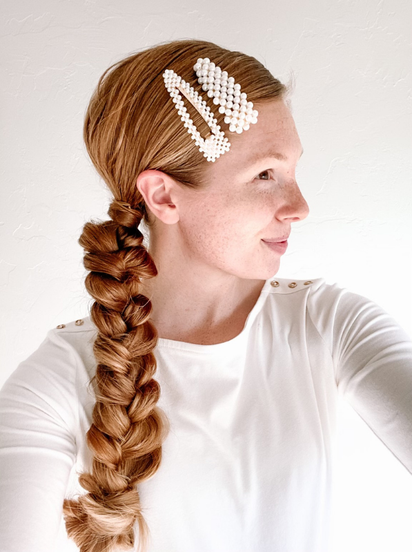 The first way you can dress up your braid is by adding clips. I am sure you have seen these pearl clips circulating the internet and even your church. They are so easy to find now! I have seen them in T.J. Maxx, Walmart, and Target, but have also linked some here to make things more convenient. Dainty Jewells also carries some amazing and super-cute hair accessories. Click here to shop their accessories page. Feel free to get creative and use any kind/color of clip! The possibilities are truly endless.