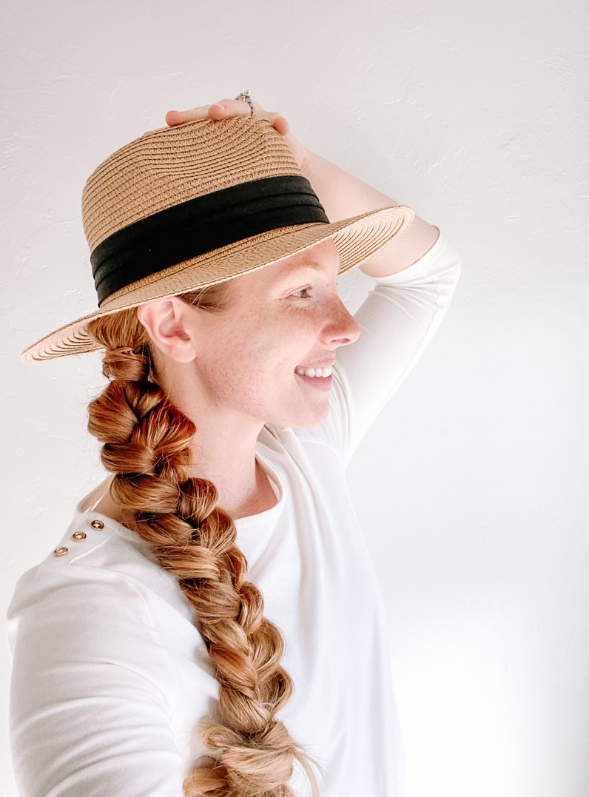 Hats are always a good idea, and you can wear so many different kinds of hats with a braid! Large sun hats, straw hats, and even a ball cap for those casual days. I linked my favorite straw hat here. I couldn’t find the exact one I own, but this one looks just like it.