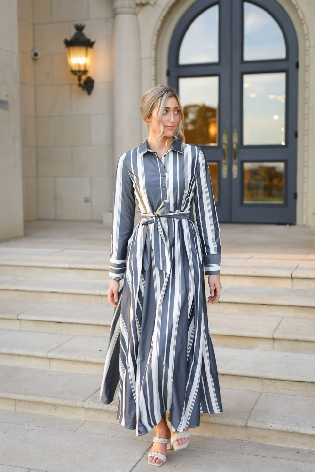 A long-sleeve shirt dress layered over thermal leggings or tights is ideal for midweek errands or casual outings. Button it fully for coverage and layer with a structured coat or puffer jacket.