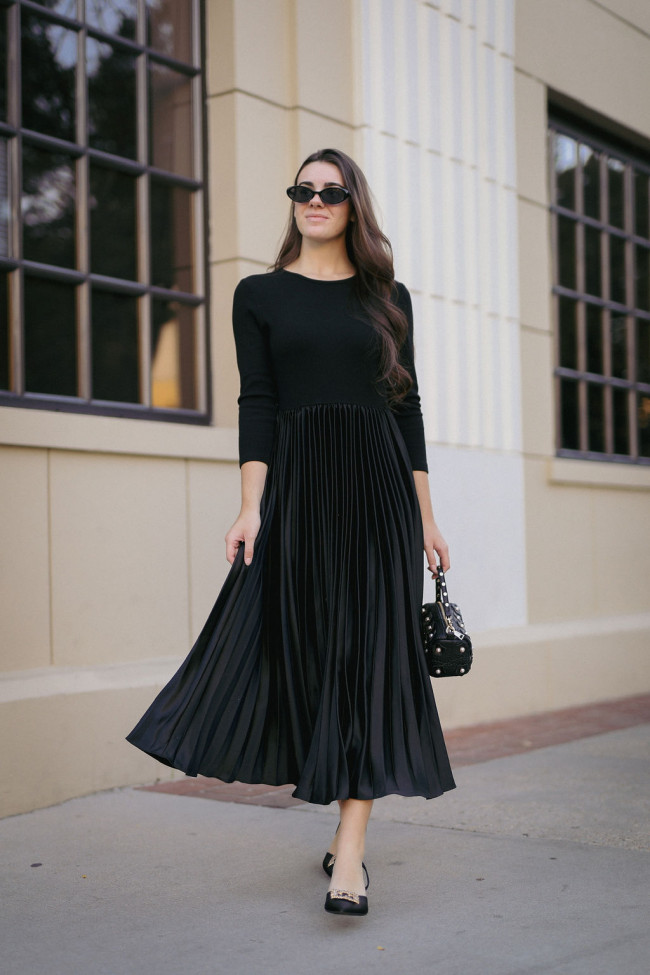 Day 4: Pleated Skirt Dress + Sweater Layer