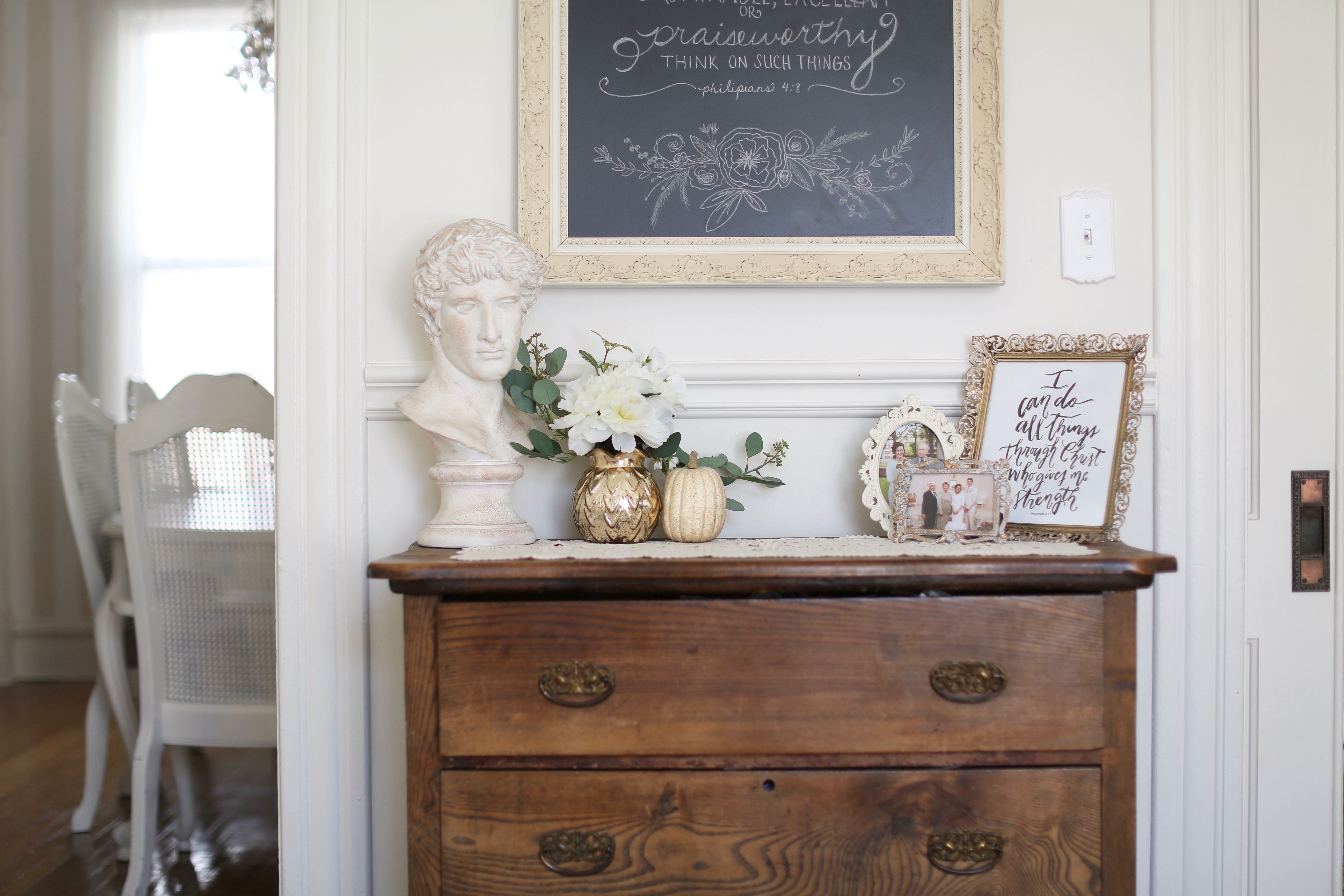 One of my dear friends, Lisa, helped me decorate these areas of my home. Thankfully, we have the same taste in style. It was super-fun working with her. Lisa is actually the one who FREE-handed the chalkboard script in our living room. She’s amazing!