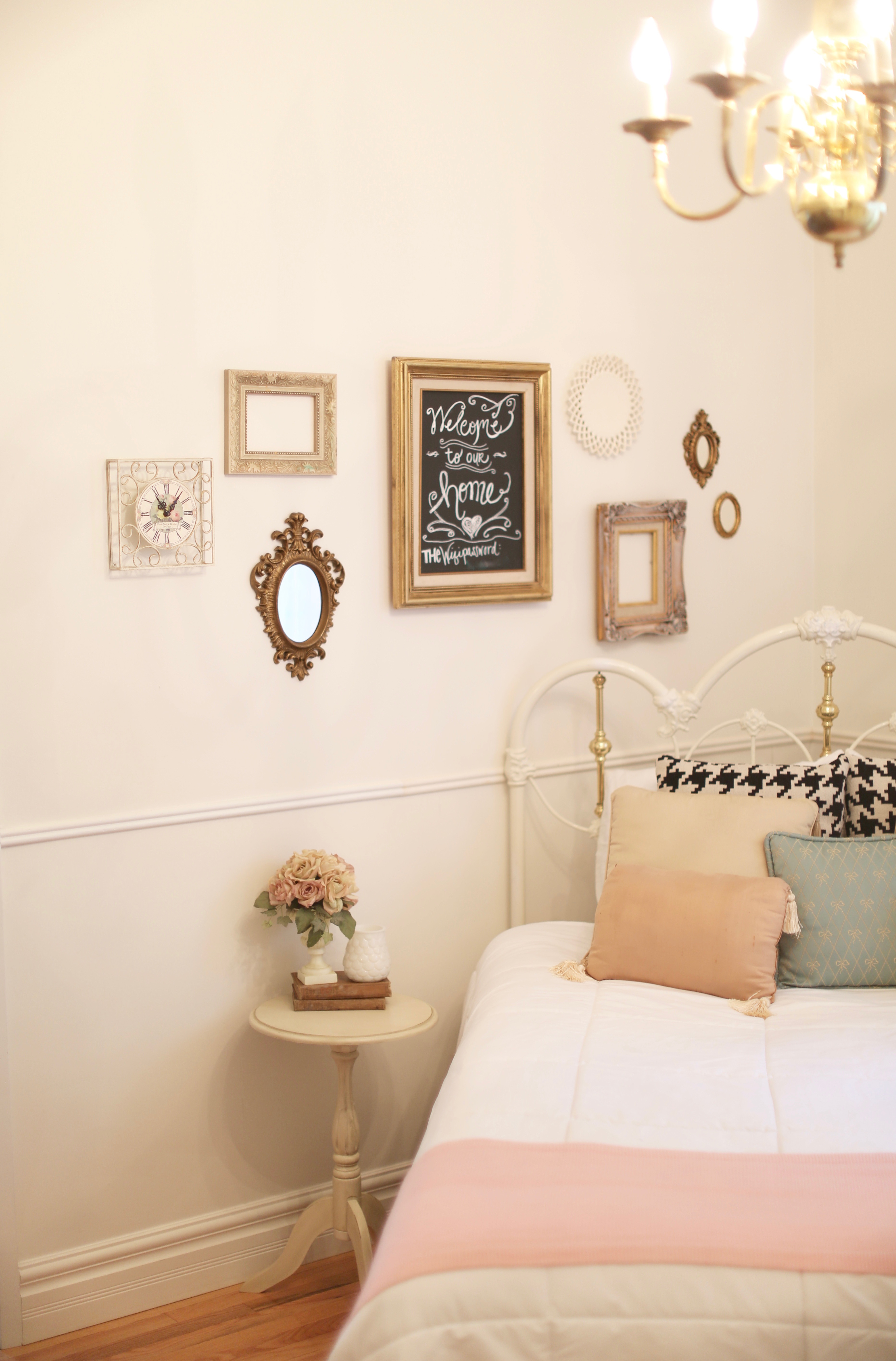 I love antique mirrors and frames, and you can see that reflected throughout my house, including the guest room.