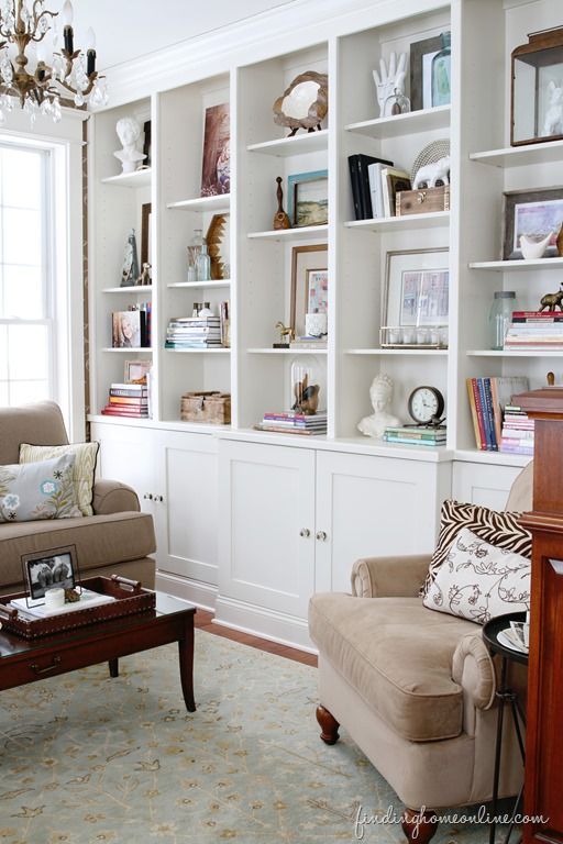 I’m not a cluttery type girl. I like everything to be in its little home, which doesn’t always happen unfortunately, but that’s always the goal! Bookshelves like these are the perfect place for “pretties” and stuff that generally takes up a lot of space. Once again, notice how crisp and clean everything is with all of the white!
