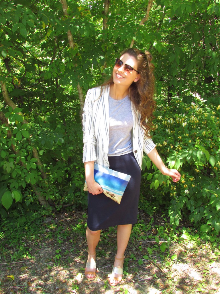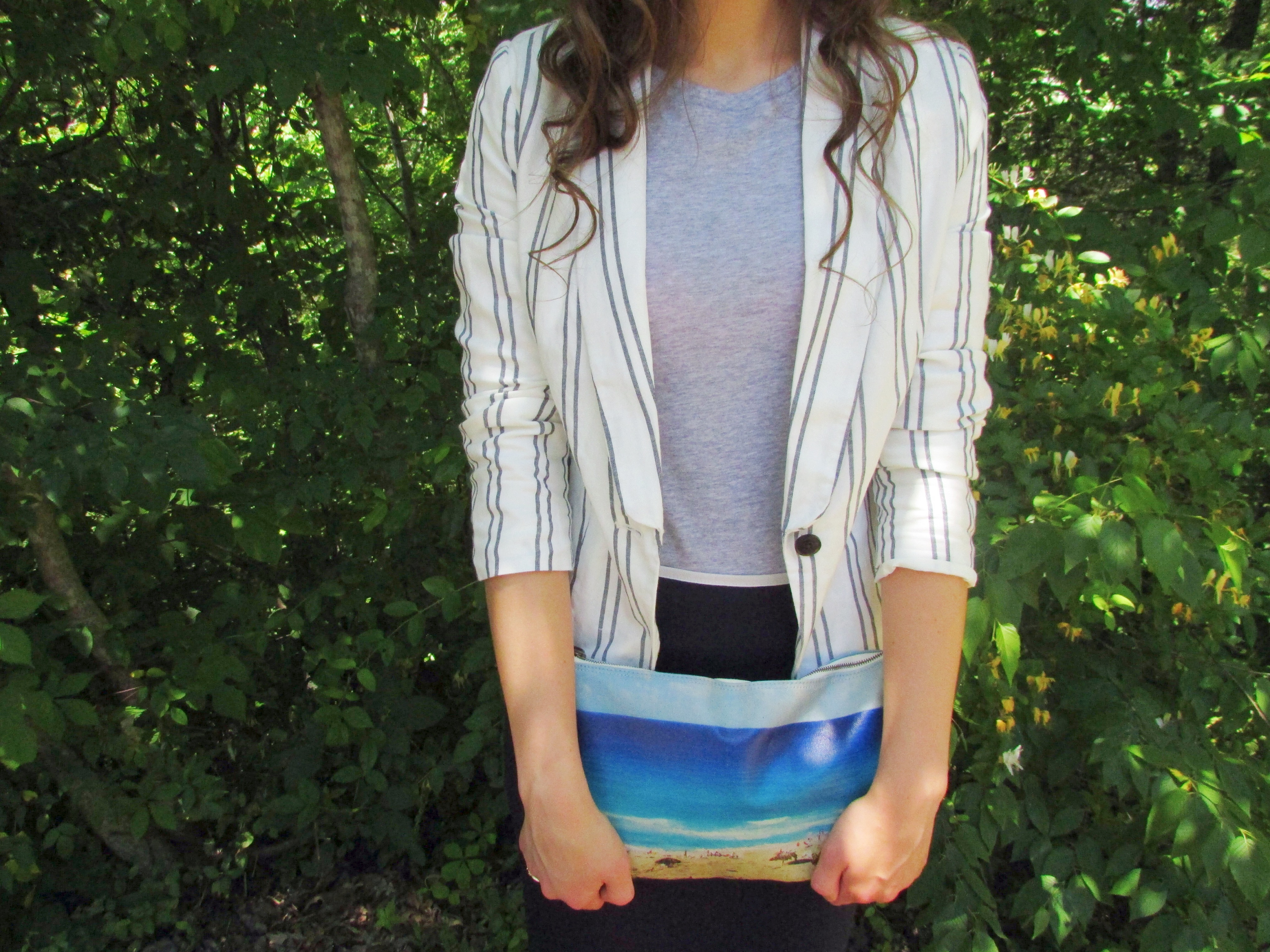 I played around with mixing neutrals when putting this outfit together, and while I loved the overall look, I thought it needed that extra something to really tie it all together. To achieve the complete look, I added my beach-scene clutch from Madewell. That clutch is a dream. I am infatuated with it.