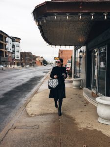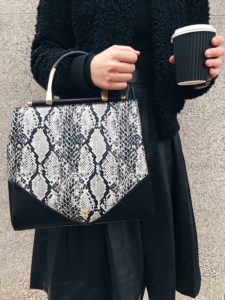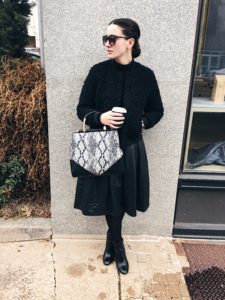 Completed by contrasting the patterned tights and patterned purse by Kate Landry, the outfit was coffee-date ready, New Years Eve ready, or even meeting ready.