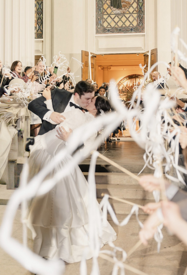 The bouquet toss didn’t go quite as expected either. We had guests from out of town, family and friends included who we don’t see often and that meant we wanted pictures with a lot of them. Some of the more traditional reception activities got pushed to the side because of this. Since I hadn’t done the toss yet, my coordinator suggested, “Just throw it during your exit after the kiss.” So that’s exactly what I did, and it ended up making for such a unique and comical send-off!