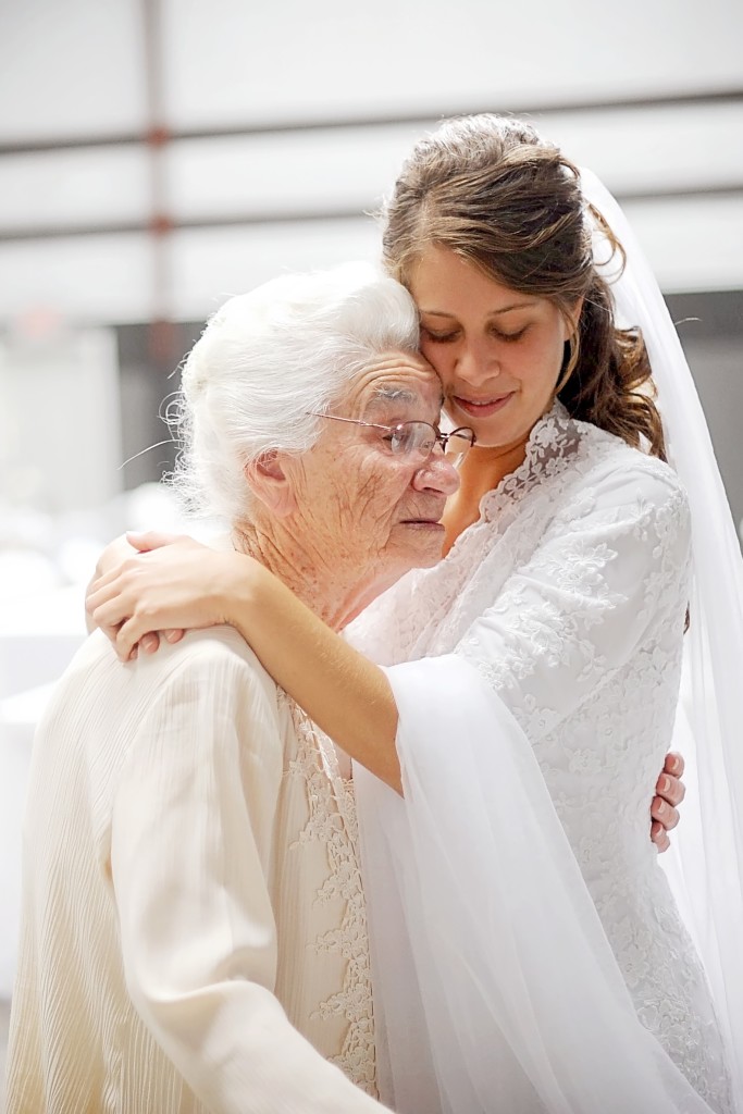 The most important aspect of the day for me was that I feel surrounded by family. My family is the most important thing in the world to me, second only to God. I have a large extended family and I wanted them involved in every part of our special day. It was the little things with each of them that stand out in my memory. My mom and my grandma helping me into my dress, the priceless shot the photographer got of my great-grandmother and I sharing a hug—those are moments I will cherish forever.
