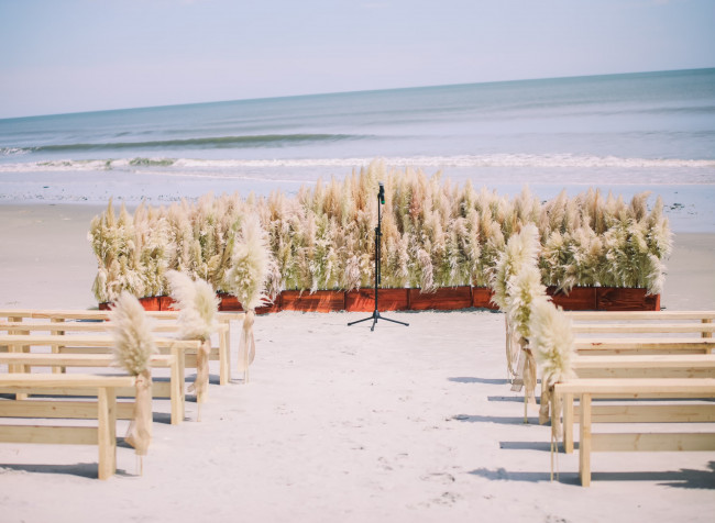 The theme and vibe of the wedding was relaxed and beachy, yet still classy and maybe even a little on the boho side. The pampas grass wall for the ceremony was absolutely stunning, and my favorite decor piece.