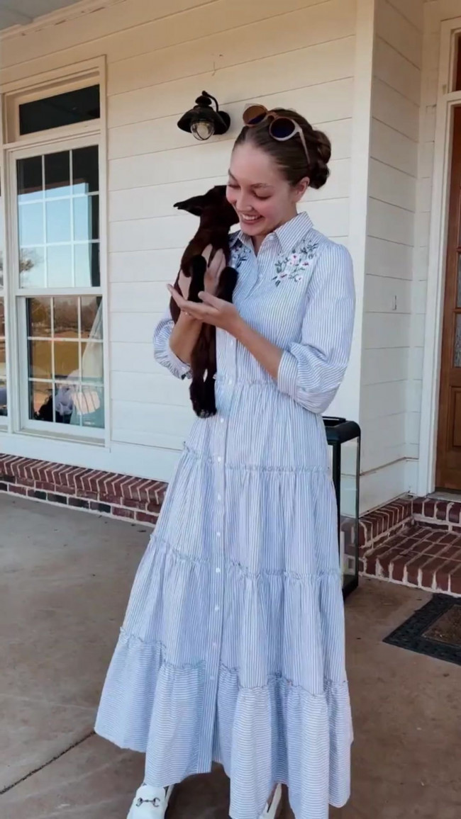 Talk about classy Southern style! This striped and embroidered maxi shirt dress is a beauty! Annabeth styled it to perfection with simple accessories.