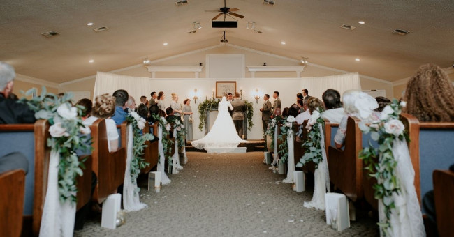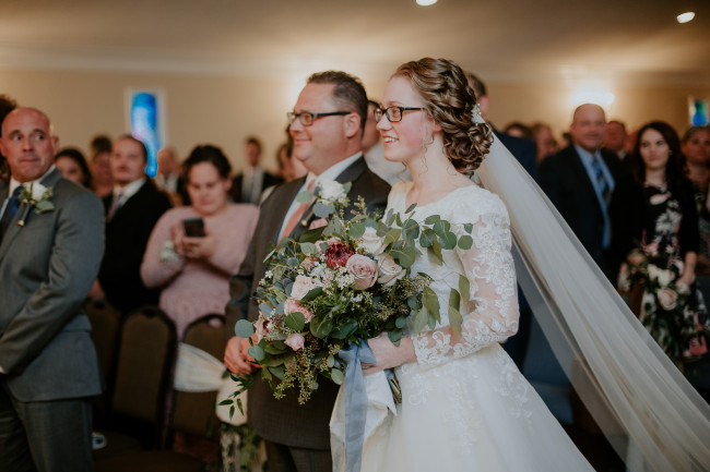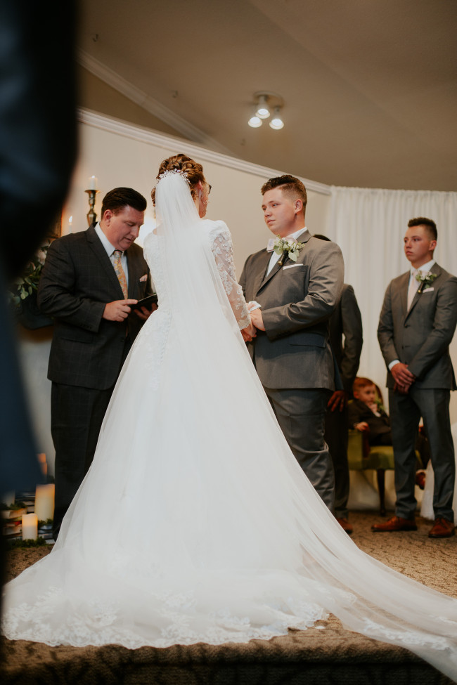 Years ago, I had seen pictures of Charity Walter’s wedding (if you’re reading this, you probably already know that she is the designer and CEO of Dainty Jewell’s!). I fell in love with how she had built a wall on their church platform and made it look like a parlor in an old house. I knew from then on that THAT was what I wanted for my own wedding one day!