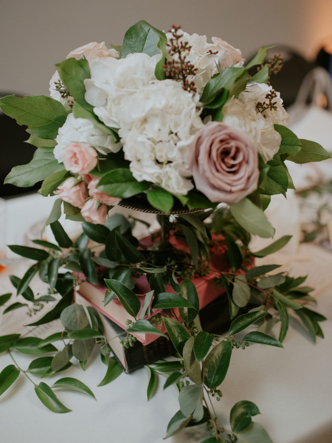 I had always known that books would play a role in my wedding, so for our theme, I chose to marry my love of books with my love of all things vintage. I dubbed the style “Vintage Romance,” but I suppose the more apt name would be “Literary Romance” because of the book/love story details.