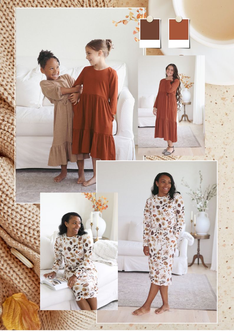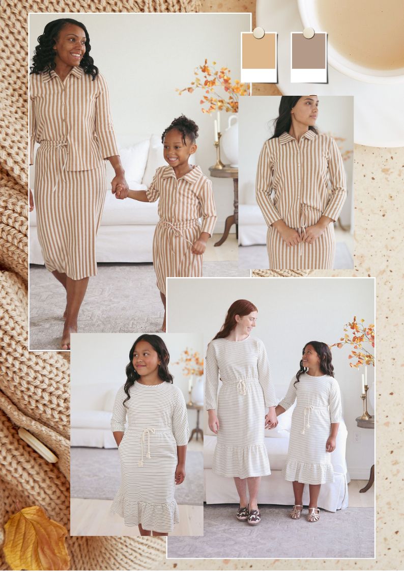 The New Chapter Dress is simple and chic and has been one of our favorites for year-round wear. We just added two gorgeous Autumn colors we know you're going to love! And, like many of these styles, you can match your mini! A new design we've fallen in love with is the A Perfect Day Set. We just released it in two gorgeous prints - they're the epitome of fall! They'll also pair beautifully with other tops and skirts in your wardrobe.
