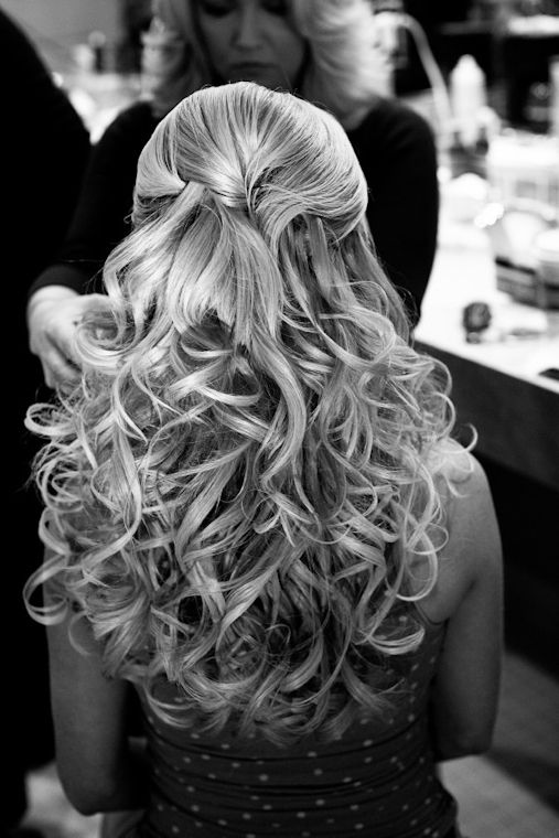 Don’t underestimate the gorgeousness of a head full of lovely curls as shown above. If you’re thinking about wearing your hair down, consider your wedding venue and expected temperatures. Wearing your hair down may not be best for a hot summer outdoor wedding, and breathtaking curls may not look so glorious after being exposed to humidity.