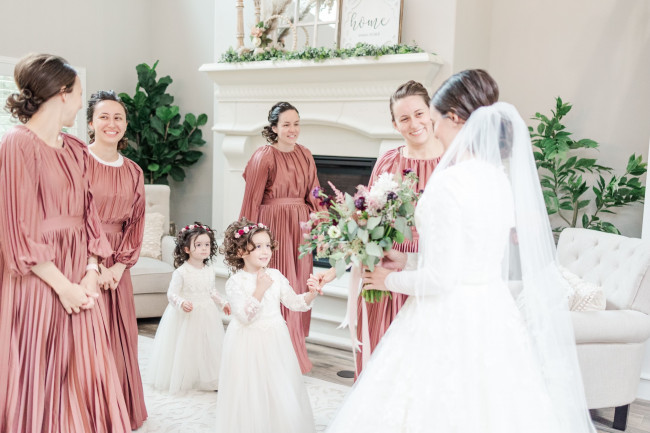 Bridesmaids' dresses: Dainty Jewell's Moonlight Sonata in Dusty Coral