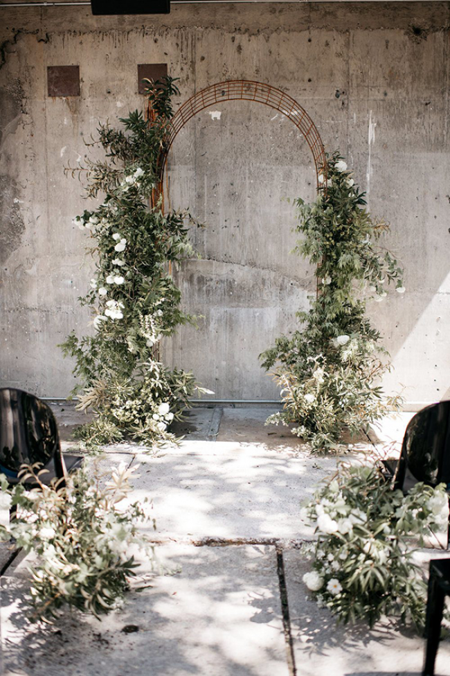 We got married in a beautiful church building under a massive floral chandelier. It was stunning! Floral arches are all the rage now, though. Check out this gorgeous arch!