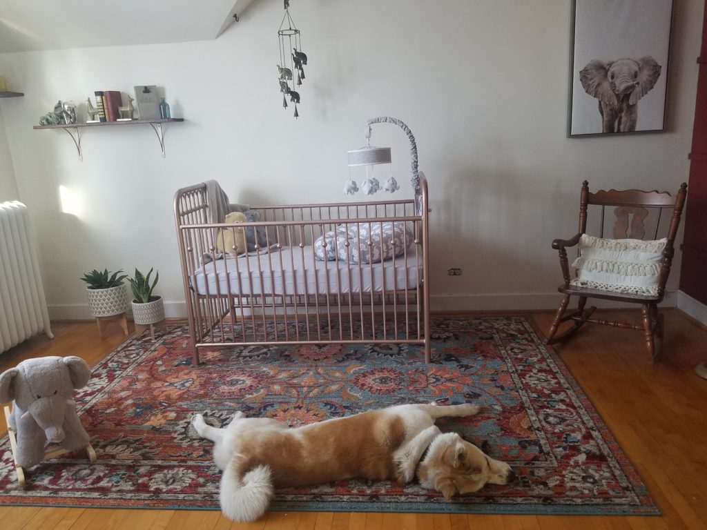 My favorite element of the room is this colorful rug from Rugs USA. This is my first purchase from this site, and I highly recommend it; the selection is endless, and the pricing is great! This rug is so soft our pup sneaks in and lies on it any chance he can get! I also love our crib from Wayfair.