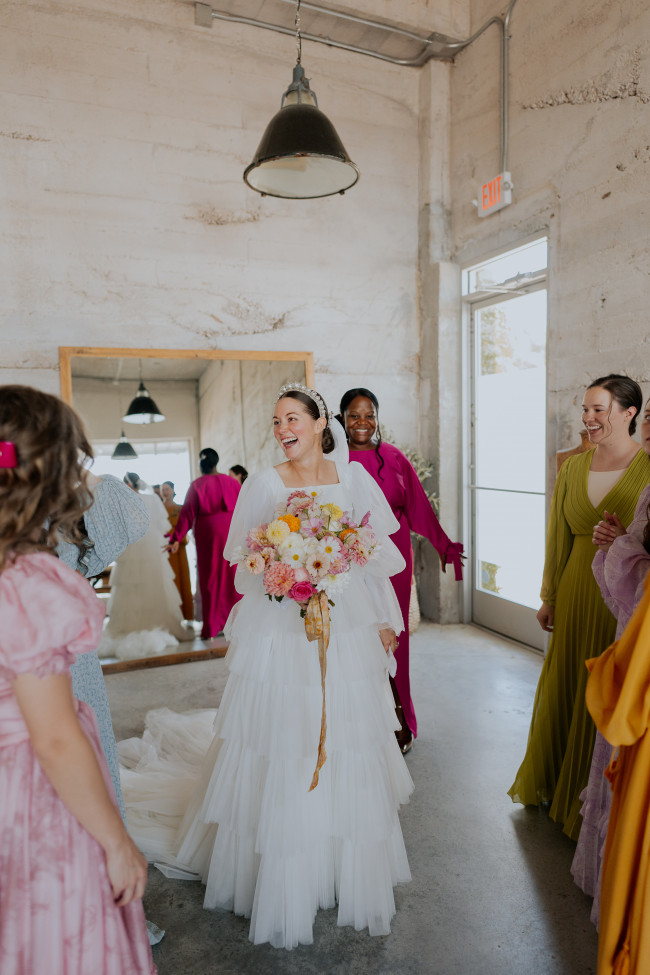 I love wearing fun clothes on a regular basis, so I knew I wanted a dress that had the same feel. Before getting engaged, I was looking on Pinterest at wedding dresses to see if I could get any ideas of what I wanted. As I was scrolling, I found the absolute perfect dress. It wasn't linked to a website, so I assumed it may be an old picture that was circulating. The dress was in a smoky grey color, but I hoped it would be possible to find something similar in ivory. I think I searched for weeks on Pinterest until I realized the initial dress I saw was still available to purchase. When it came time to actually go wedding dress shopping, I searched high and low for a bridal store that had this specific dress in store. The designer of the dress is based in South Africa, but I was able to find a few places in the U.S. that had it in their store. Thankfully, there was one in Austin so my mom and I didn't have to travel too far to try it on.