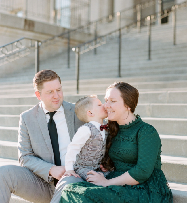 One of the fun things about family photoshoots -- picking out clothes! I chose to wear the Venice at Dawn Dress for our photos. It's so classy and feminine, and the emerald is the PERFECT color for Christmas. Such a stunning jewel tone!