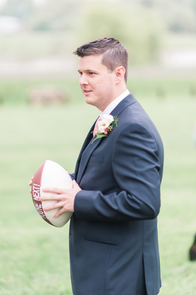 My husband and I wanted to be unique and different, but traditional at the same time. We incorporated little touches like a candy buffet, but we served vintage candy. And rather than me throwing a bouquet, I decided to give the girls a break. Instead, we put the bachelors on the spot with my husband throwing a football to them.