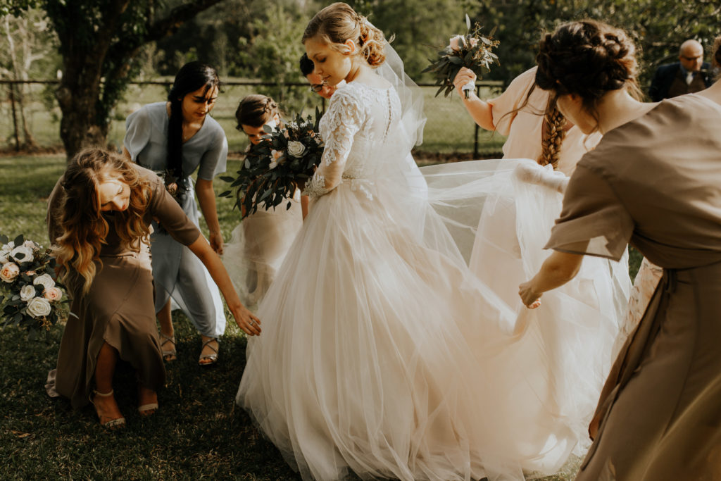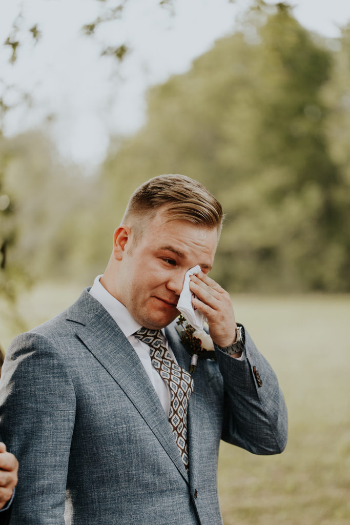 Also, during our first look, I had a giant bug in the bottom of my dress. I had no idea until our pictures and video came back! The pretty whimsical-like picture of my bridesmaids “fixing” my dress was actually them trying to get all of the bugs — large and small — out of my dress.