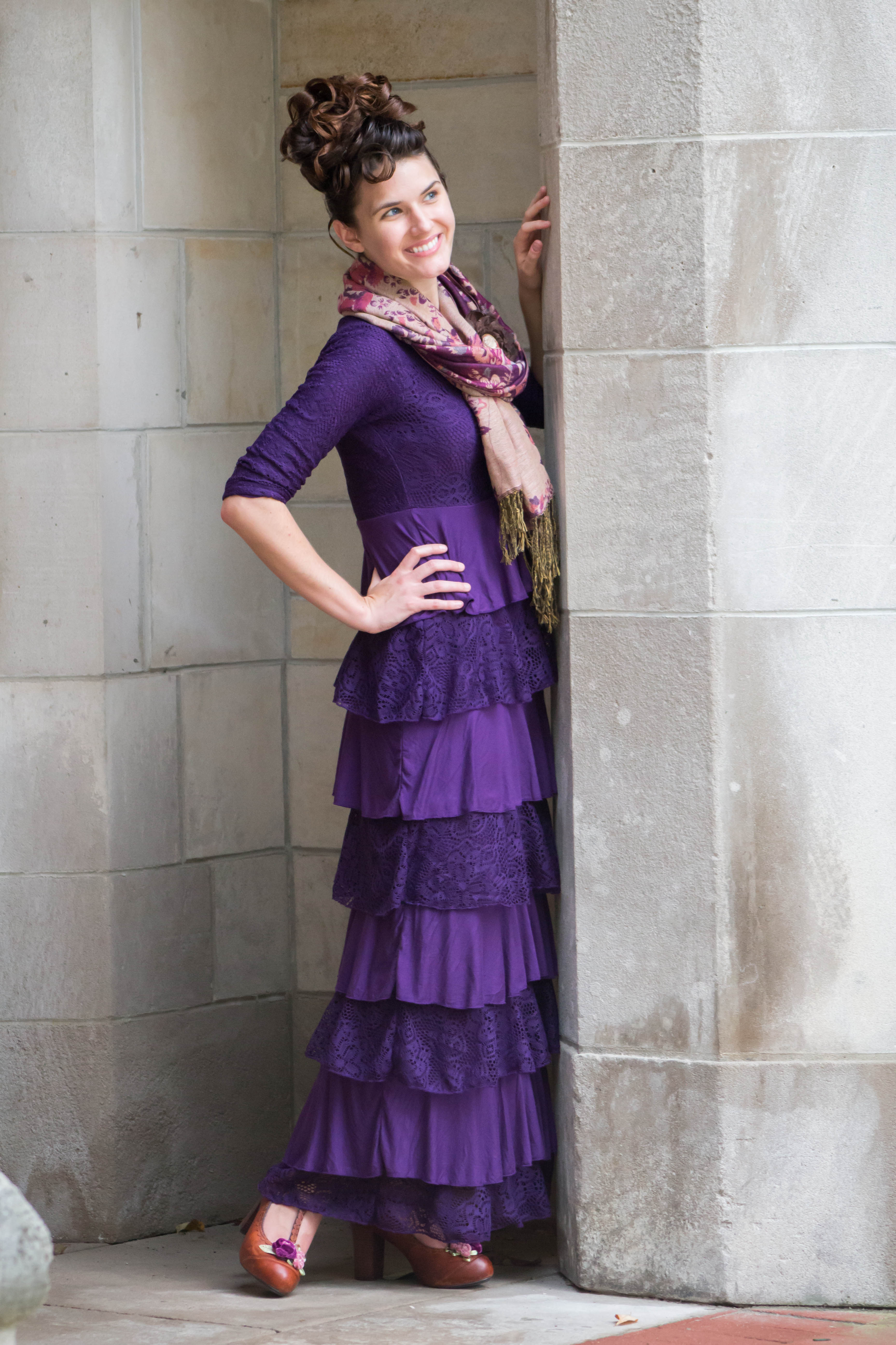One of the many reasons I purchased the “Dreaming in Vintage” dress is because of its bold, rich color. Also, I must say that this is the most comfortable item in my closet! The beautiful, plum layered lace dress is an outfit that will look darling with anything. Eagerly awaiting, autumn has finally arrived and this deep color is just perfect for suiting the season and many different occasions. I decided to lavish the dress with brown and cream as accent colors. Having an outfit with a burst of color is always enjoyable. You can choose to either dress it up or present a more casual image with a scarf as I did.