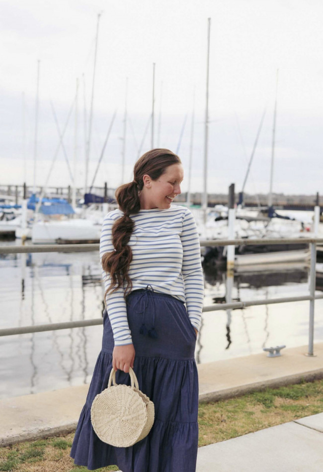 - A nice jean skirt: A good denim skirt is a must-have for any wardrobe. Look for a dark wash that can be more dressy or go casual, midi or maxi length!