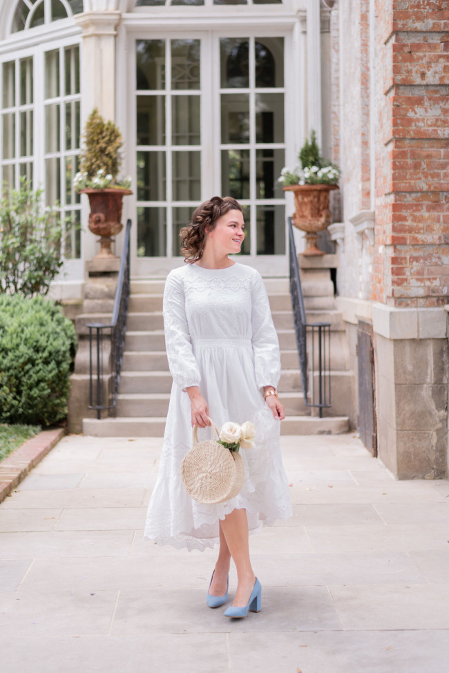 Think "garden party" when you see this lovely Blossoms of Windsor dress. Nothing declares "spring" more than a dainty white lace dress!