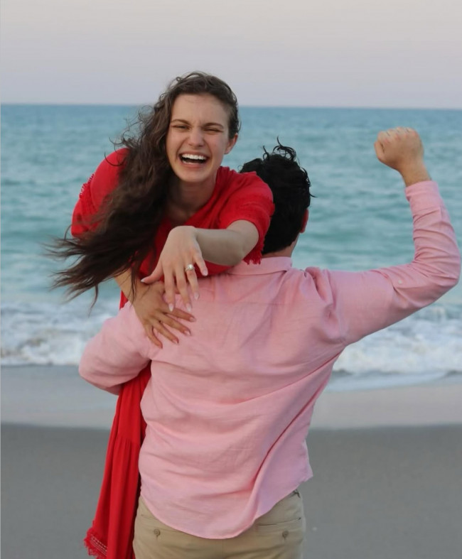 Ethan proposed to me at Melbourne Beach in Melbourne, Florida… this was so special because it was the exact same beach where my dad had proposed to my mom 27 years ago. Us standing in the same place where my parents' love story began made the moment more meaningful than I ever could have imagined. As soon as I said yes, our families, who had been secretly watching from a distance, all rushed out onto the beach to celebrate with us. So many happy tears, seeing all of them there, sharing in our joy, it made my heart so full.