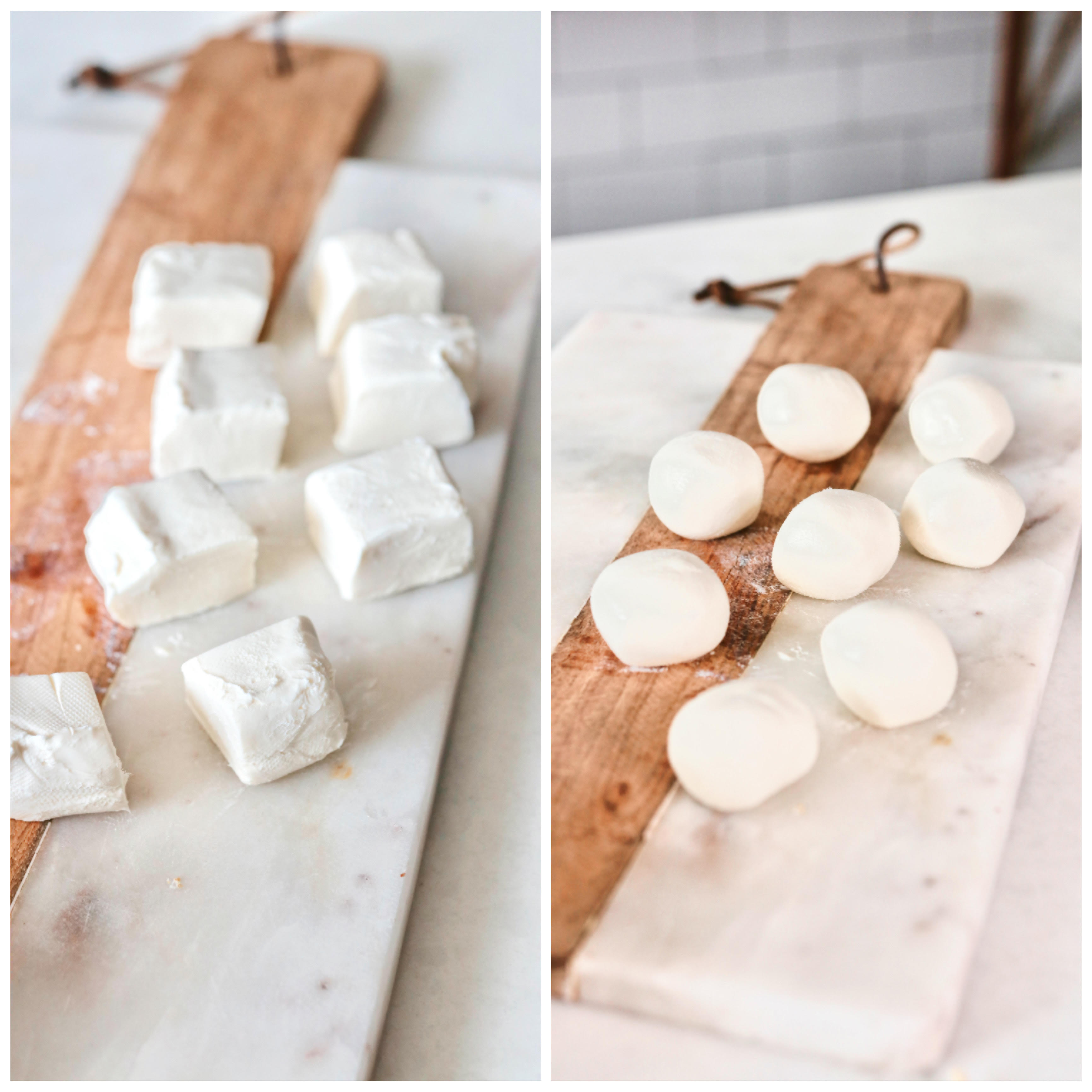 Cut the cream cheese block into 8 pieces and then roll into small balls.