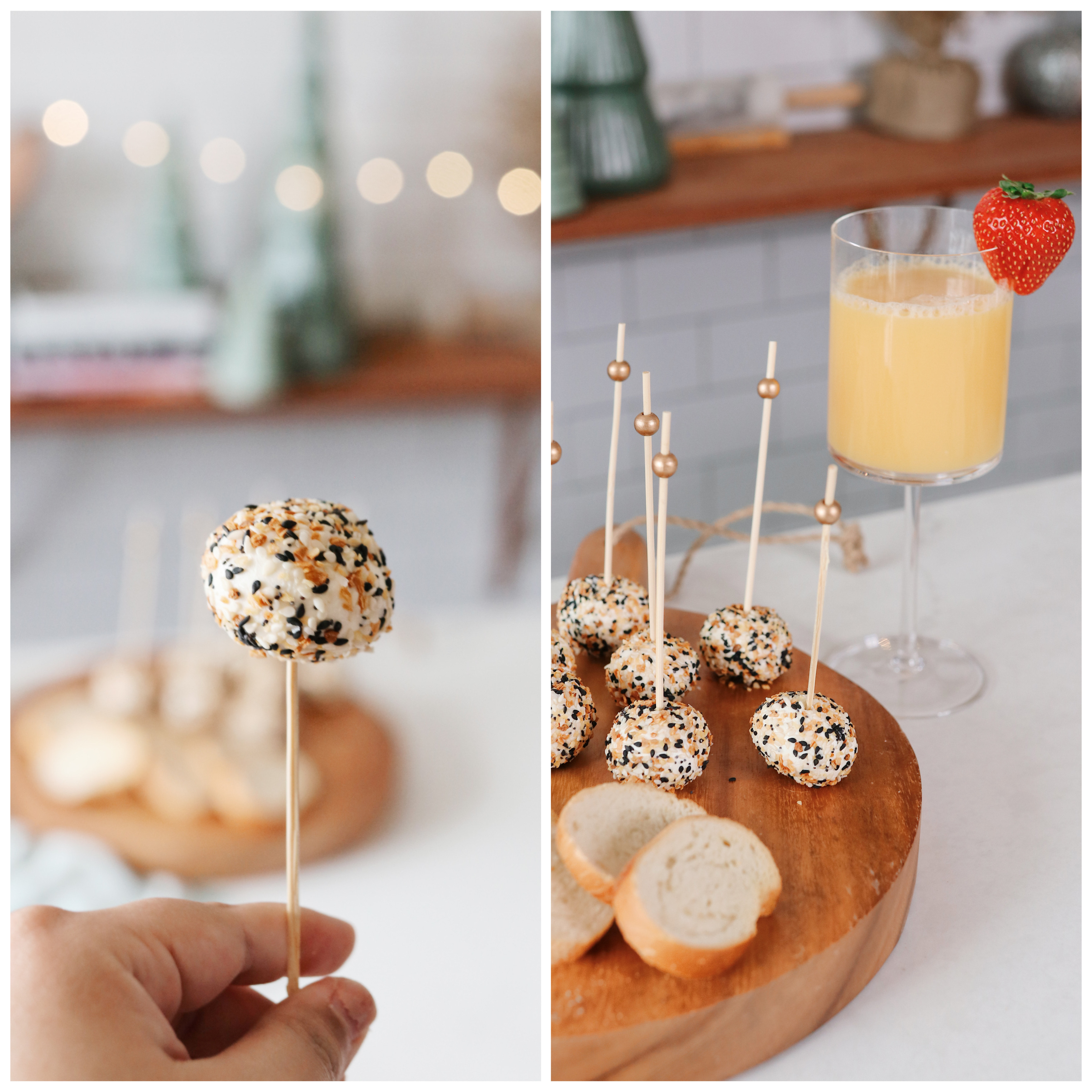 Adding them onto a platter will make these bites look more appetizing than they already are. A nice iced drink with fresh fruit is the perfect touch. Orange juice with sparkling cider is my favorite combination. Don’t forget the fresh fruit. (;