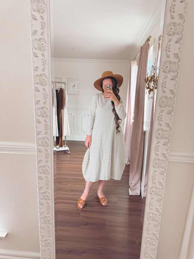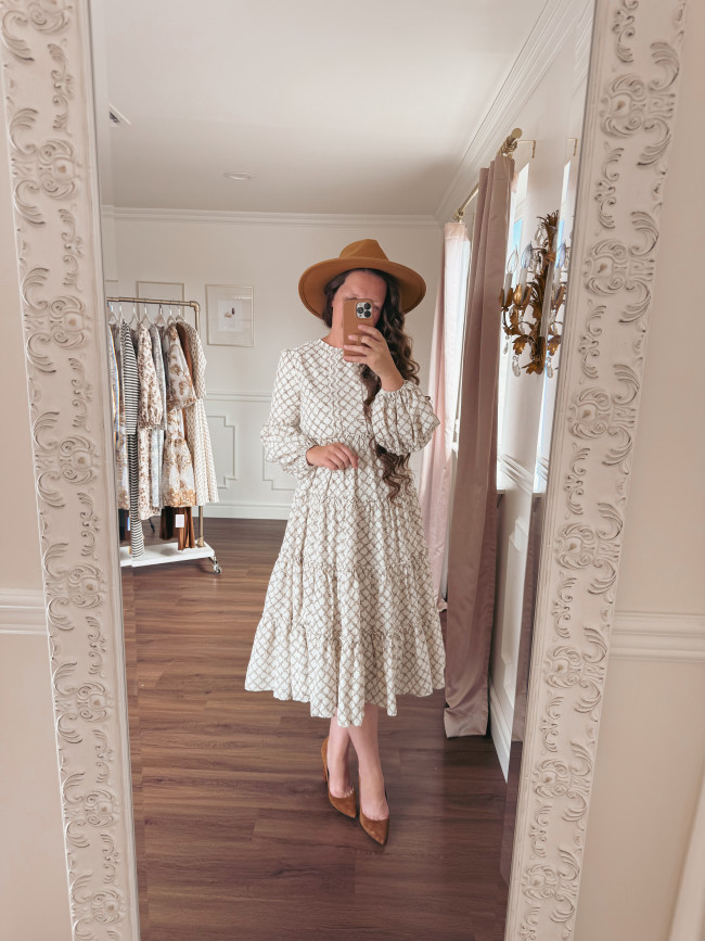 The Fairytale Fields dress (releasing this week!) is definitely a closet staple for me. The oversized fit is so flattering, and I adore all the dainty details. This dress is perfect for the transition from summer to fall (I see you, Southern states). Wear with flats or sandals for an early fall look.