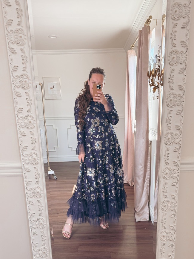 The Willow Wisps dress is a flattering maxi dress with such a fun pattern. Wear it for family photos, work, or church!