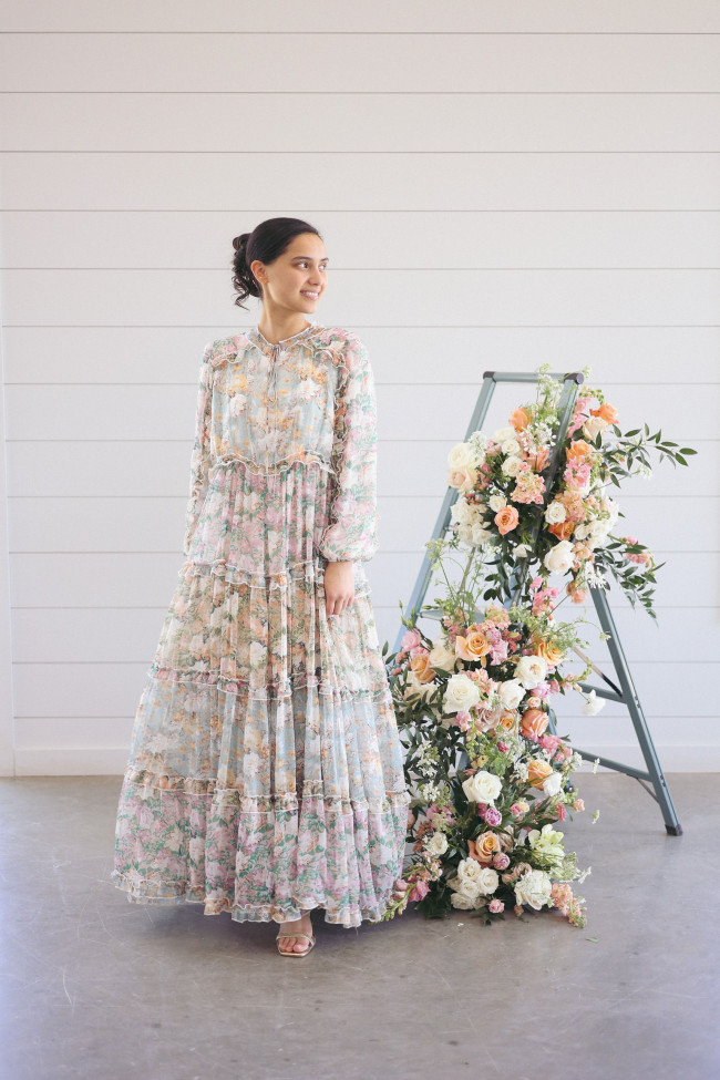 - Mix and Match: Don't be afraid to mix and match sage green with other colors like dusty rose or cream for a unique and cohesive look. The Fluttering in the Garden dress is straight out of a fairytale with whimsical details and the perfect balance of greens, pinks, and creams.