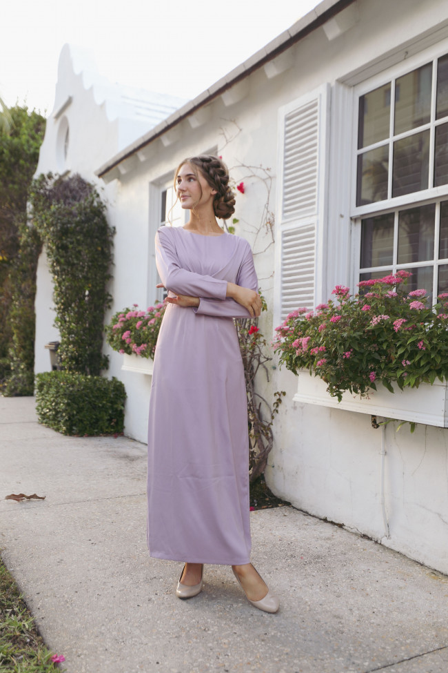 - Long and Flowing: A classic choice for a modest bridesmaid dress is a long and flowing gown. This style is flattering on all body types and can be easily dressed up or down depending on the formality of your wedding. Try our Evenings at Annesdale dress in lavender - an elegant option for your special day!