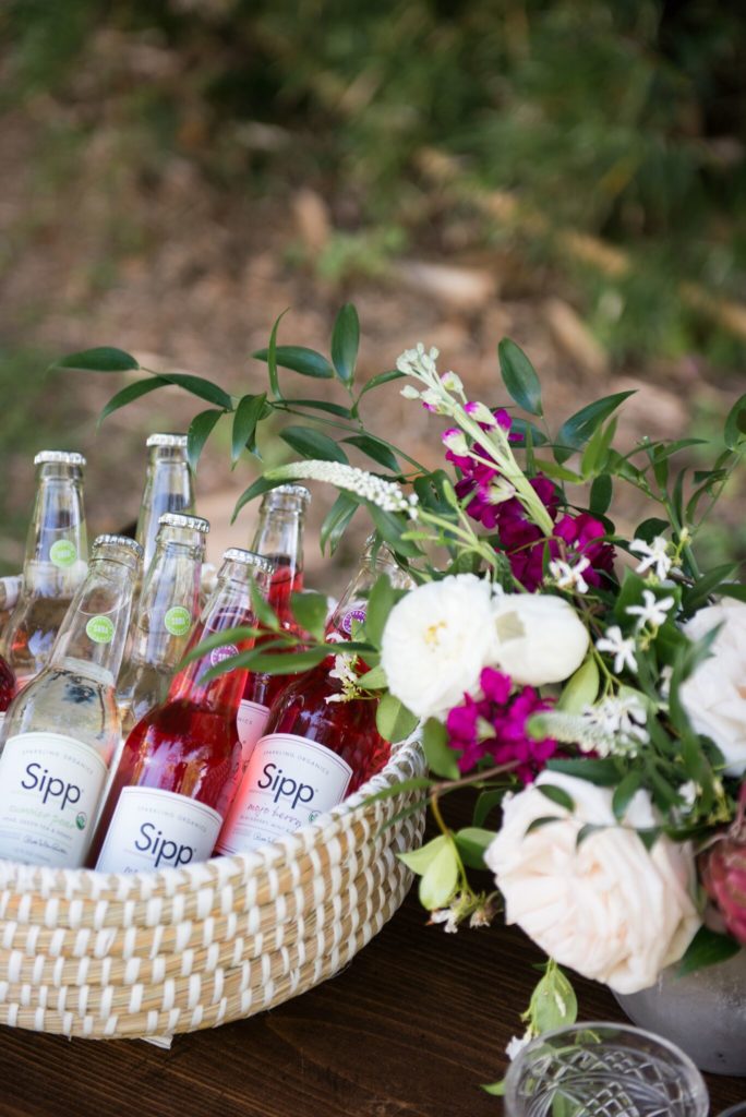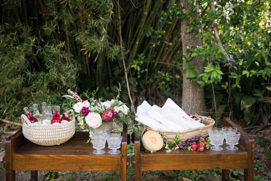 Sophie had the grand idea for the jasmine floral runner that stretched down the entire 12 ft length of Ashley’s custom metal and wood table. We added a rug and a few pillows for seating and voila!