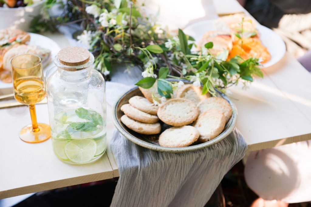 To make things easy, we ordered takeout from Lafayette’s local, Pop’s Poboys, which was perfect and elegantly paired with another local staple- Zapp’s potato chips. Rosemary and mint from Amelia’s garden were added in with the fruit infused water, and Ashley brought her famed gluten free strawberry donuts. Add some mixed fruit salad and some pretty drinks, and you have a feast for queens.