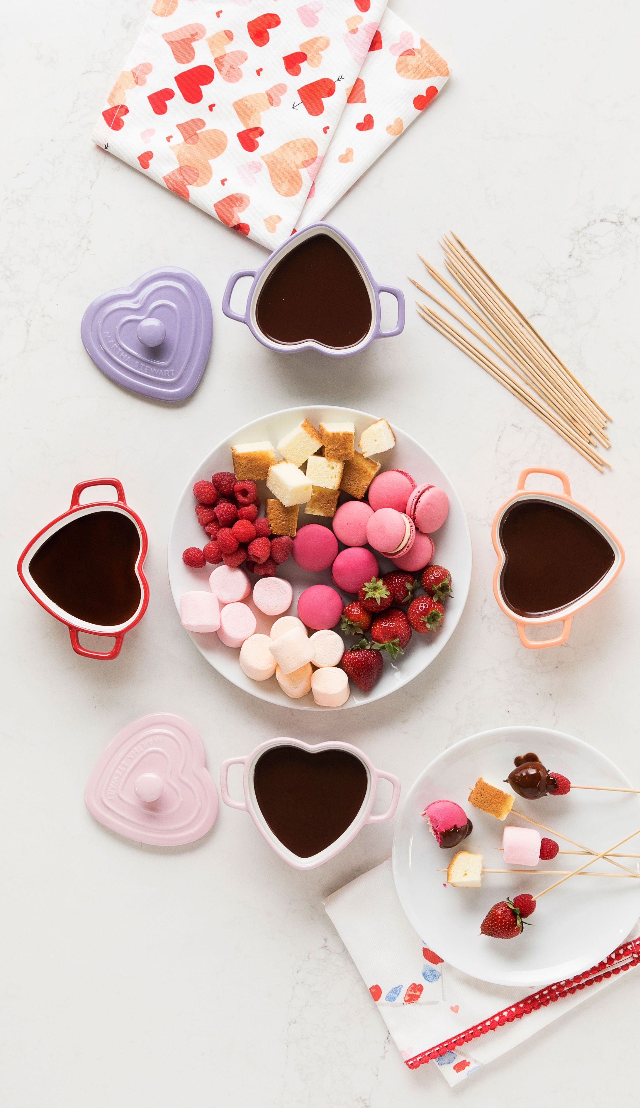 Besides a few fresh flowers and maybe a couple heart balloons, I’m going to keep the décor to a minimum and let the food be the star of the show! I was really only planning on serving a variety of sweets until I happened to see heart shaped chicken nuggets at the end of the aisle during a recent trip to the grocery store. They were so cute I couldn’t resist! And if you know teenagers, they won’t pass up a chicken nugget – they’re not fussy eaters! I plan on making a cute spread with waffle fries and different dipping sauces to make it fun. Another idea for something like this would be to ask guests to bring their favorite dipping sauce for everyone to try!