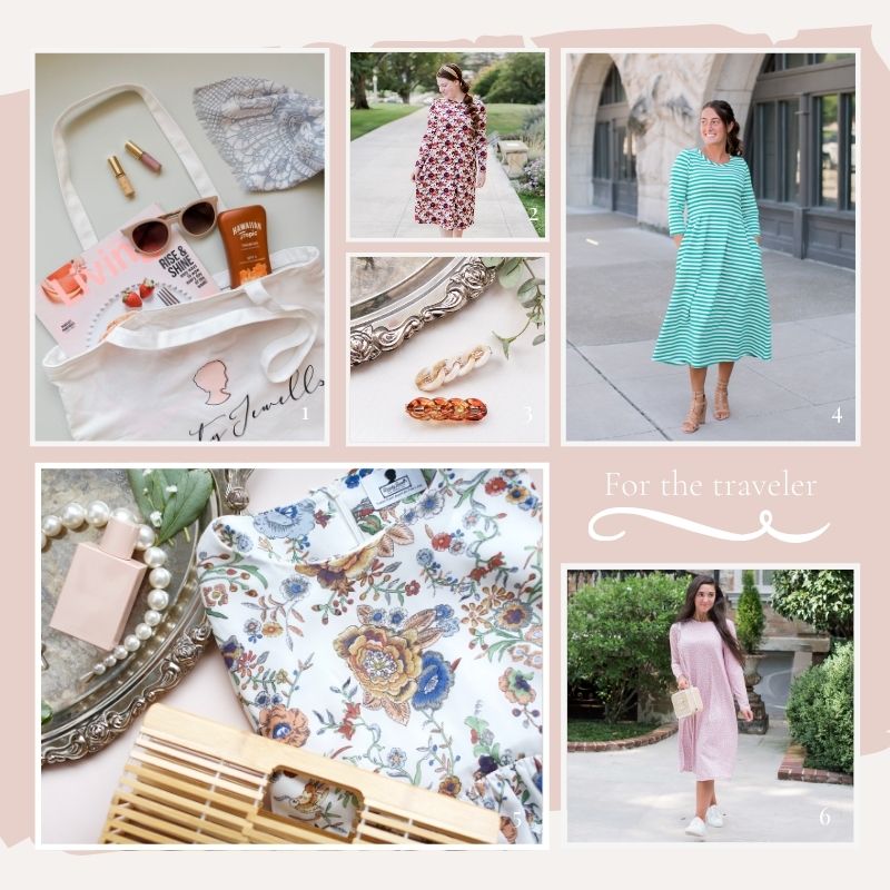 For the traveler: Comfy & cute dresses for all-day traveling, a fun tote for souvenirs and treasures, and stylish hair accessories to add a touch of flair!