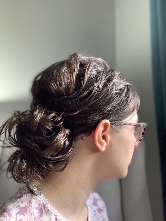 If your hair is long and wavy or curly, you might love this high, messy bun. It's easy to do and great for church, work, photos, or fall outdoor activities.