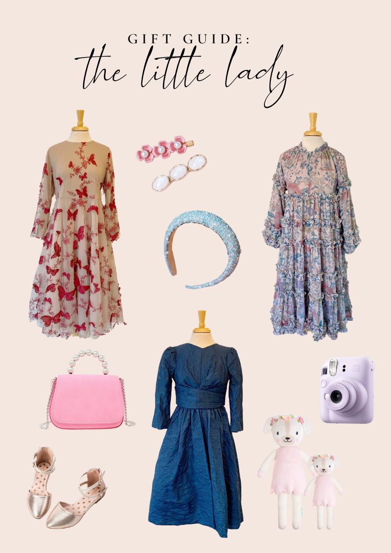 Featured items: Flutter & Fly dress | Treasured Times dress | Golden Harvest dress | Hair pins | Headband | Gold flats | Pink purse | Knit dolls | Mini camera