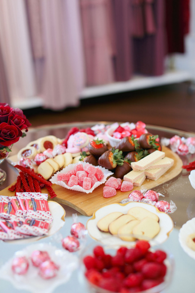 I recently created a Galentine's charcuterie board for the Dainty Jewell's team, incorporating all the pink and red sweets that we enjoy on this day of love.