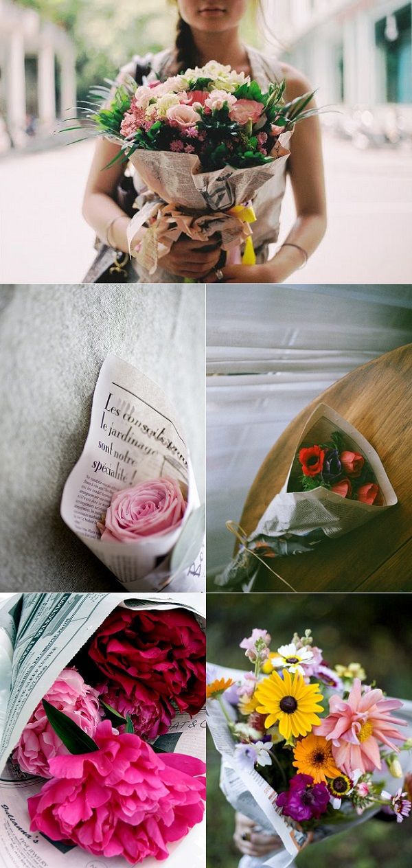 Tip: Wrap the bouquet in newspaper for a cooler look. // Via