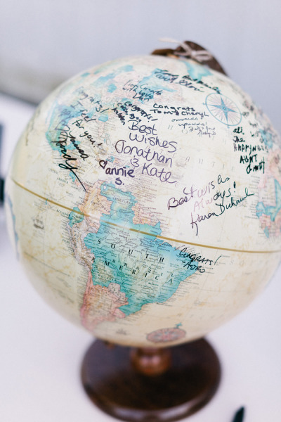 Try using a creative and unexpected guest book. I love this idea of using a globe. I’ve seen everything from instruments to index cards used!