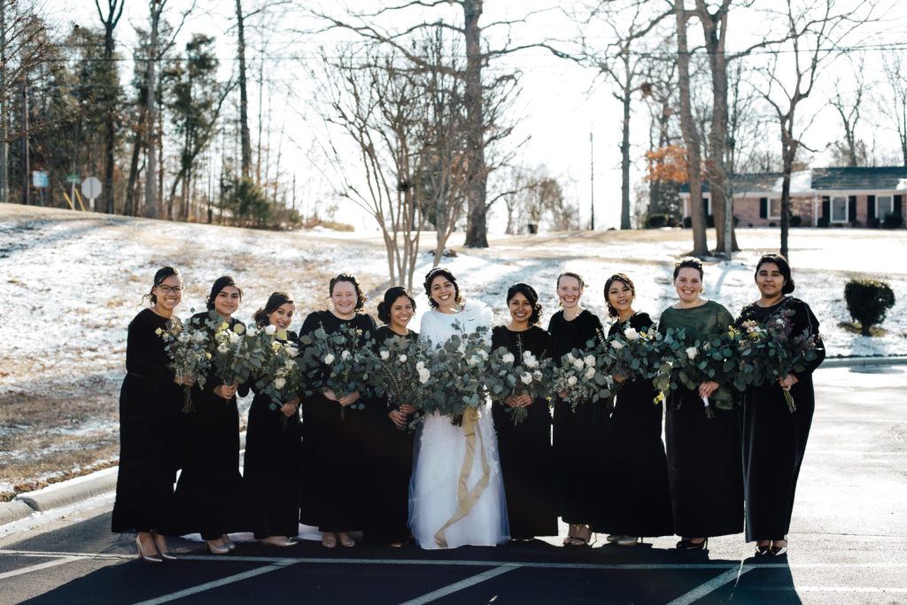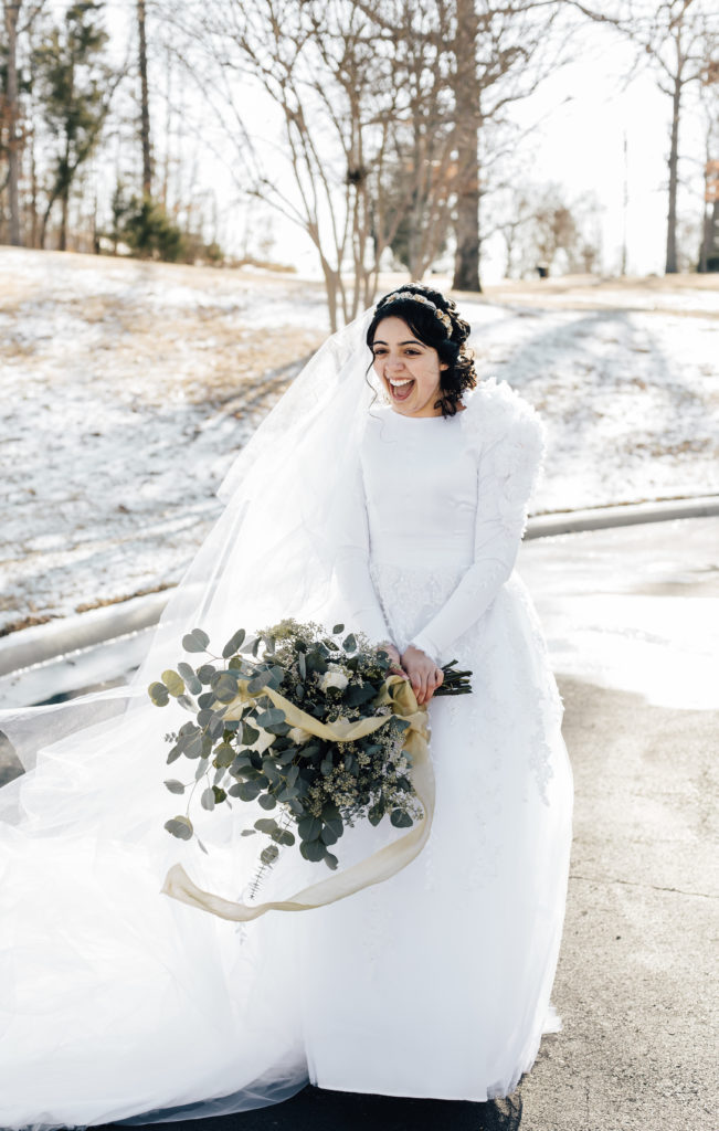 One of my favorite memories of our wedding day was definitely the moment we were driving to meet Preston for our first look. I was SO over-the-moon excited to see him! Every worry and concern about the weather, cold, and last-minute details flew out of my head at that moment, and I just wanted to see him. We had some pretty cold weather on the week of our wedding day (and it had snowed a few days before!), but I must have been undergoing some sort of adrenaline rush, because after a while of taking pictures outside and noticing everyone around me shivering in the freezing wind, I realized I was so excited I hadn’t even noticed the cold!