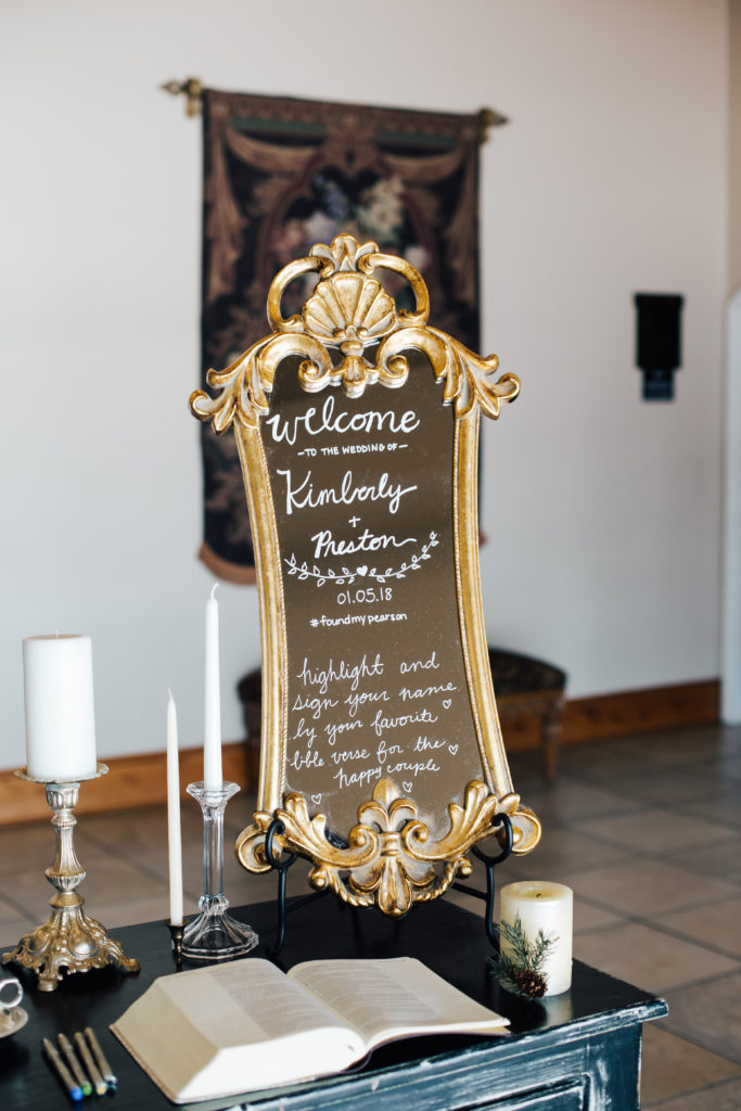 I have always been the kind of girl to have a Pinterest board full and ready of wedding ideas. After Preston and I became engaged, I realized I could NOT narrow the theme I wanted down to two words. I was envisioning our wedding to be full of earthy and romantic details. My sister simplified the theme for me when she called it “botanical elegance.” She hit it right on the spot! I wanted long velvet dresses for the bridesmaids in various shades of greens, eucalyptus greenery everywhere, fragrant roses, classic decor that would be unique, and soft lighting throughout the entire event. My friend and wedding decorator was able to make my dreams come true by creating a magnificent wreath that was eight feet tall! It was the perfect backdrop.