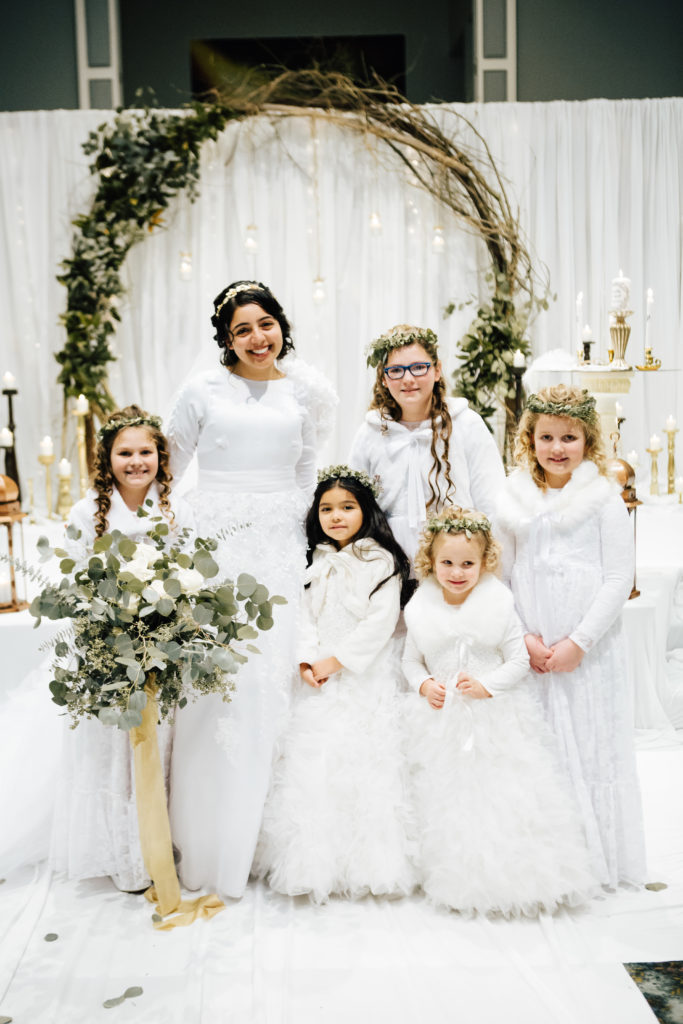 We had a fun last minute panic moment when the flower girl baskets went missing! Someone quickly created makeshift baskets that would get the job done, but I was disappointed we couldn’t find the real ones for the girls. I had found some moss-covered baskets that had a more organic feel to them. Right as the girls were lining up to walk down the aisle, they found the baskets!! They quickly exchanged the makeshift baskets for the real ones, and the girls were so good about just rolling with whatever they were given. They were such sweet helpers, and it all turned out perfect!