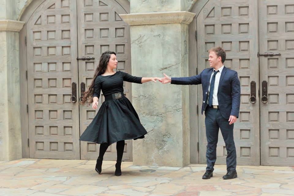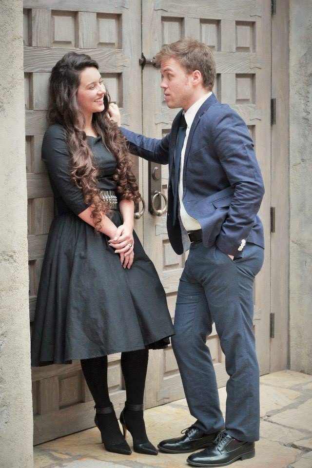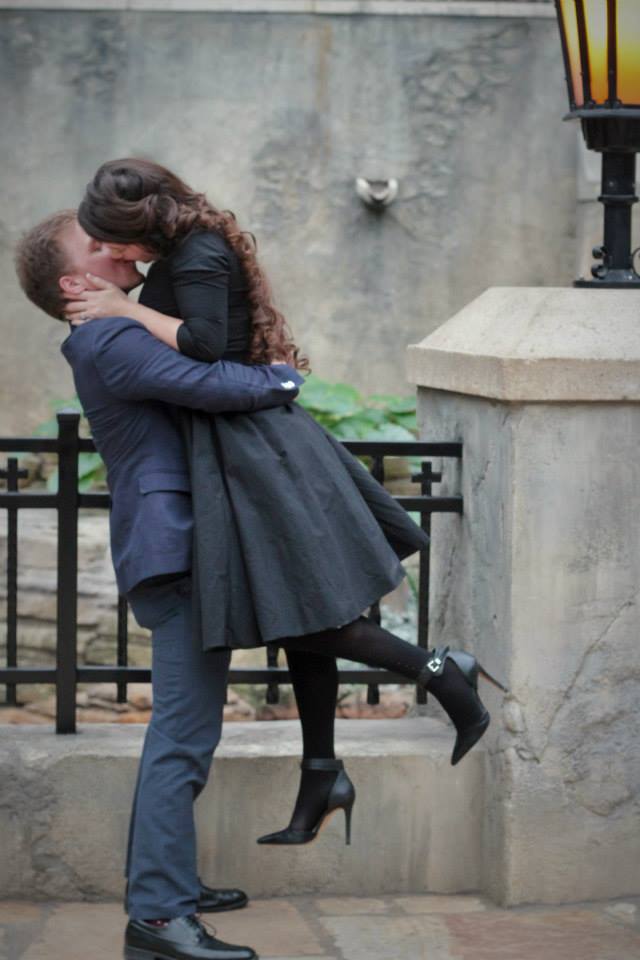 Each of these images portray so much of their respective personalities as well as their deep love for each other. We love how classically elegant their dark outfits contrast against the neutral colored architecture of the Gaylord Texan Resort. Kristen’s black circle skirt and pointed-toe stilettos are the perfect engagement session outfit choice: timeless and classic to help keep the focus on the couple.