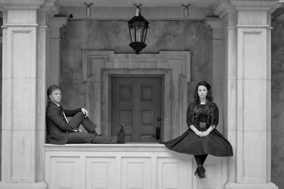 Nick’s navy blue jacket and pants keep that same classic element as Kristen’s outfit choice, but stands out on its own without blending in like a black suit would have against her all-black outfit.
