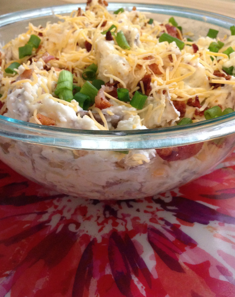 And I promise you, I found it. This recipe is amazing. There was nothing disappointing about it and I don’t think you’ll be disappointed with it either. It has everything that a potato tastes great with — including bacon! Summer is right around the corner and I think you’ll want this to be one of the dishes you contribute to any friend or family’s barbecue.