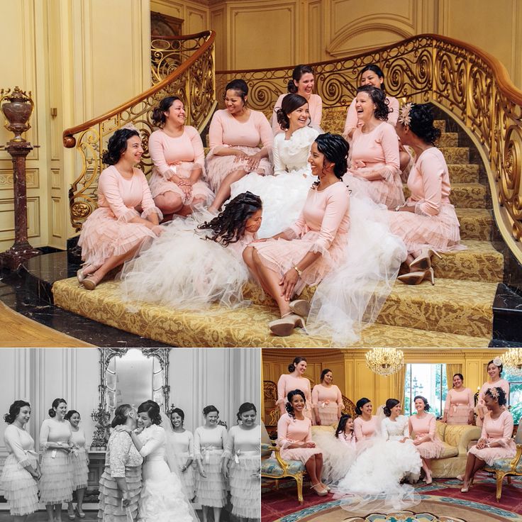 Her wedding took place much further west, however, in San Diego, California, at the luxurious Westgate Hotel. From the groom’s “first look” on the hotel’s rooftop to the couple’s send-off from the Admiral Kidd in a red corvette, Melissa’s special day had all the elements of a to-die-for wedding. An added plus? The bridesmaids wore Dainty Jewell’s beautiful Dream Dress in blush pink!